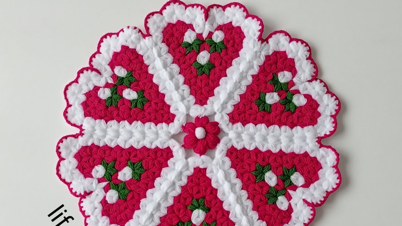 Kolay kalpli lif modellerinden harika bir örnek daha. 3 renk kullanılarak örülüyor. Kalp motiflerini tamamlıyoruz. Daha sonra tekrar onları birleştirerek yuvarlak lif modelleri örüyoruz. Her bir kalbi farklı renkte örebiliriz.