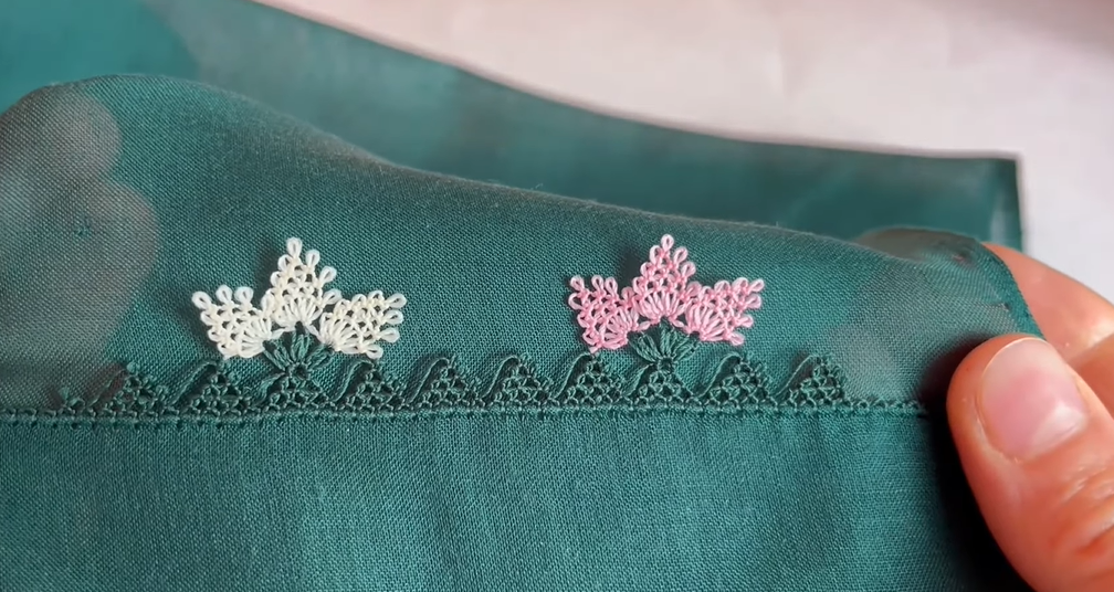 Tek renk yazma iğne oyaları, desenli yazmalara iğne oyası olarak yapılacak muhteşem bir örnek daha. 3 yapraklı iğne oyası yapılışı. Aslında 3 yaprağı bu kez çiçek olarak kullanıyoruz. Kenarlarda büyük yapraklar ortada bahsettiğimiz yeni yapraklarla çok hoşunuza gidecek iğne oyalarından.