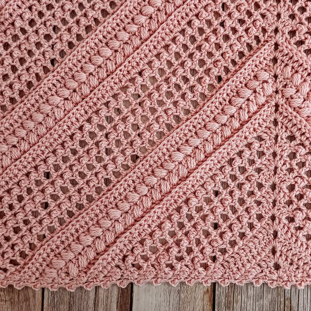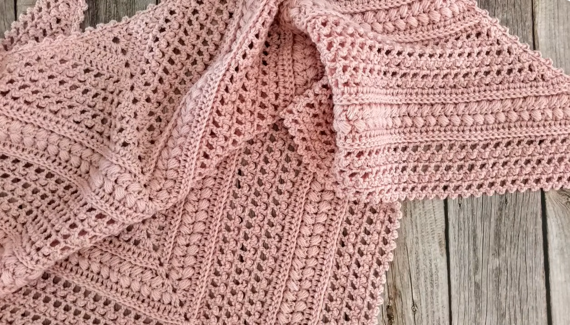 Pembe tonlarında örülmüş değişik örneklerin bir araya gelerek oluşturduğu şallardan. Pamuklu iplik ve kalın tığlarla ördüğümüz şallardan. Kalın tığla olduğu için kısa sürede, birkaç günde bitirebiliriz. Tabi örgü örerken uzun aralar verirsek örgümüzü bitirme süremiz de artar.