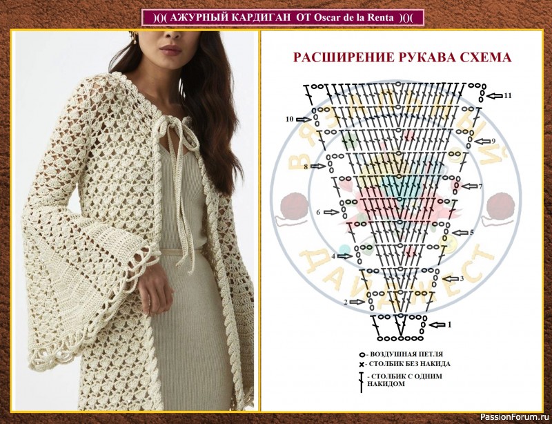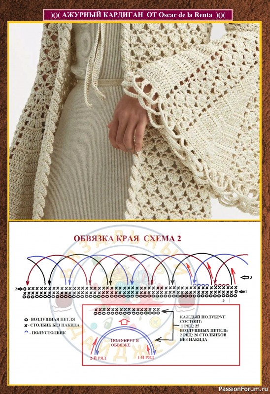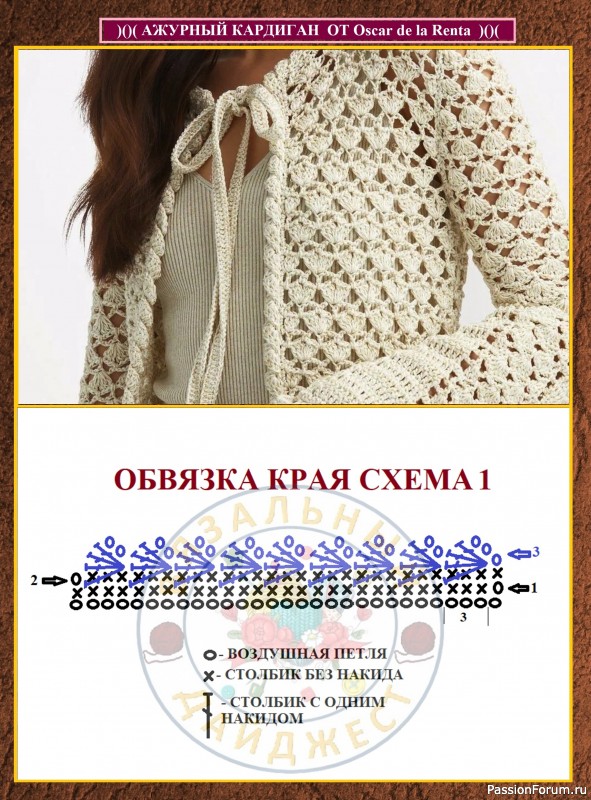 Kolay bir örnekle çok güzel örülmüş tığ işi hırka yapılışını öğreneceğiz. Araya trabzanlarla parça eklenmiş. Oscar De La Renta ünlü modacının tasarımlarından. Pamuklu iple örülmüş ajurlu kolay örgü modelleriyle örülmüş kolay örgü hırka modellerinden. Trabzan ve zincirle örülen kolay örneğin şemasına göz atalım.