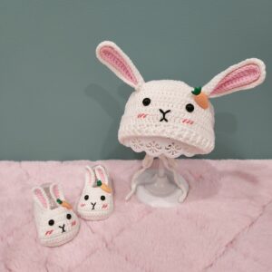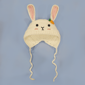 Pembe kulakları, beyaz kürkü ile çok sevimli bir şapka öreceğiz. Tığ işi trabzanlarla örülmüş şapkayı herkes kolayca örebiliriz. Şapkayı aynı sayılarda örüp farklı figürlere de çevirebiliriz. Zürafa şapkalar, aslan şapkalar, ayıcık şapkalar örebiliriz.