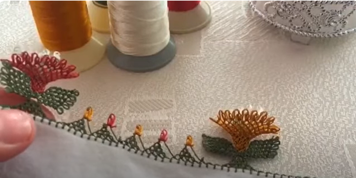 İğne oyasından hepimizin çok beğeneceği bir örnek yapılışı. Yazmalarda veya diğer kumaşların kenarlarında kullanabileceğimiz bir örnek. Dilediğiniz renklerle, dilediğiniz renk yazmalarınızda uygulayabilirsiniz. Kibar iğne oyası modelleri çeyizlerinize, yazmalarınıza çok yakışacak. Videoda siyah yazmaya uyarlanmış halini göreceğiz. Ama bence beyaz, kırmızı, sarı gibi birçok renkte desenli veya düz fark etmez uygulanabilir. Çiçek motifini yapıp birçok farklı iğne oyasıyla birleştirerek kullanabiliriz. Şimdi çiçek motifli iğne oyası yapılışı bittiğinde nasıl durduğuna bakalım.