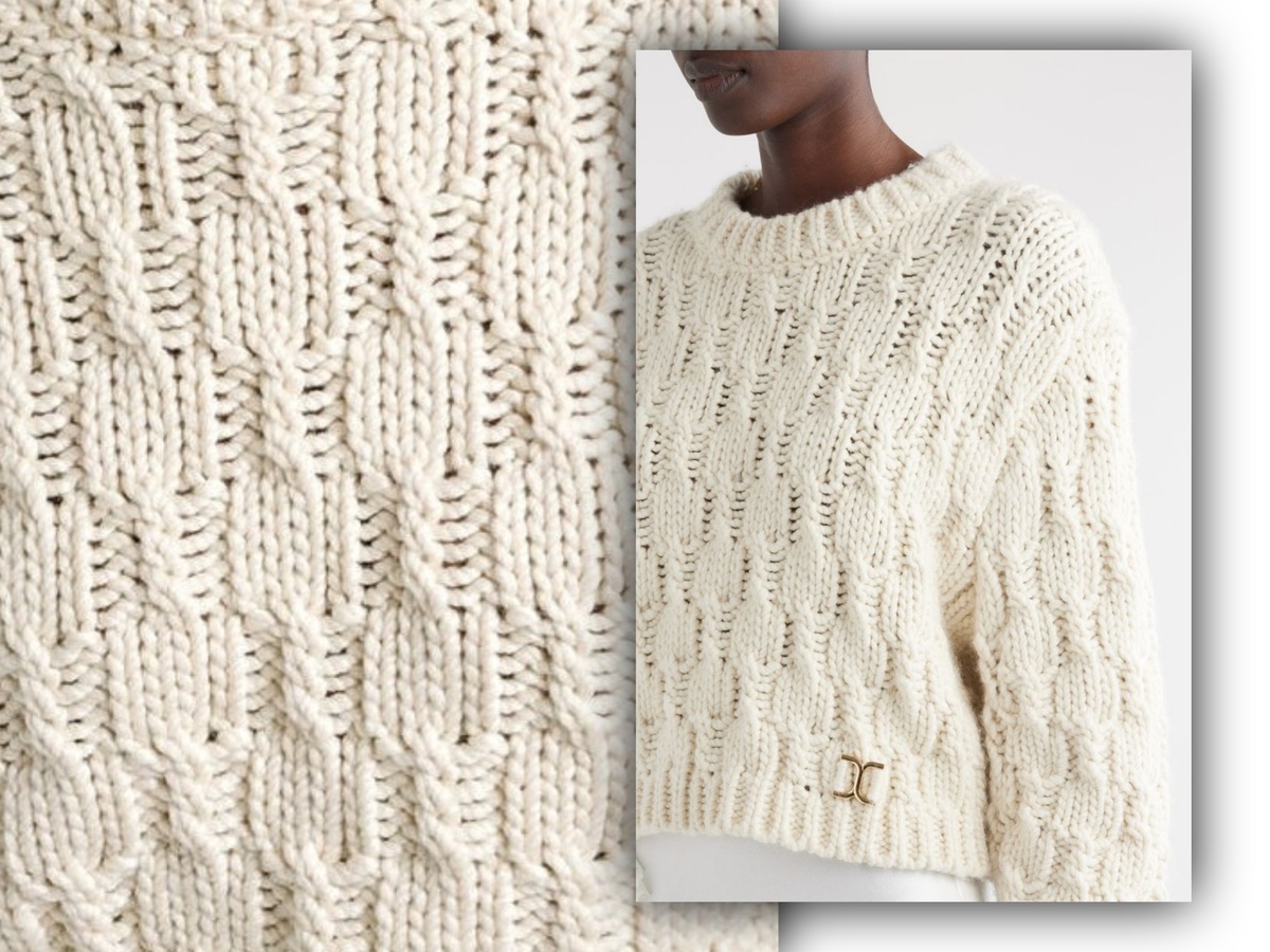 El emeği örgü modellerimize modern bir görünüş katacak kabartmalı, dokulu örneğin yapılışını öğreneceğiz. Kazağın orjinal fiyatı 834 EURO. Kaynak kısmından orjinal kazağa ulaşabilirsiniz. % 79 yün %14 ipek % 7 kaşmir iplikle örülmüş. Yünlü iplerle kazağı örebiliriz.