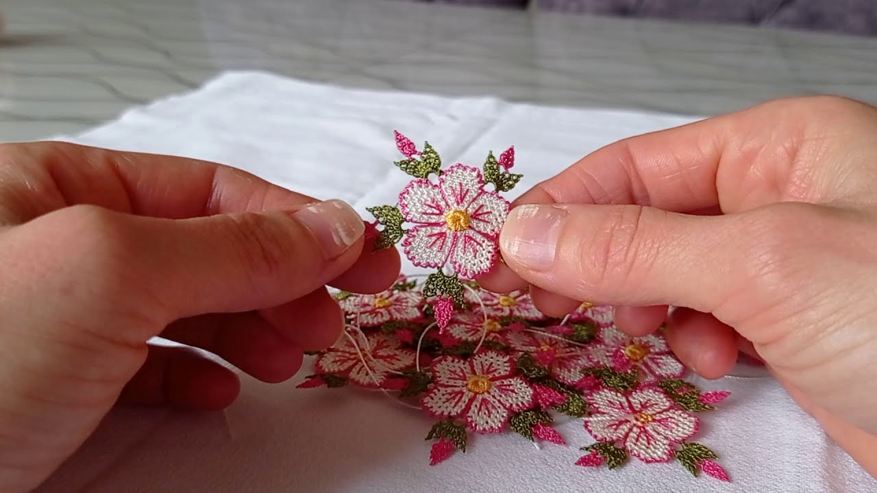 Havlunuza, yazmanıza uygun renklerde yapabilirsiniz bu güzel çiçeği. Şimdi 4 videoda adım adım iğne oyası çiçek modelleri yapılışını görelim.