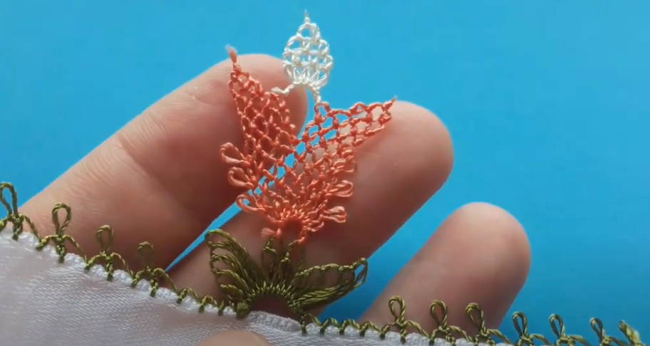 Oya tamamlandığında yukarıdaki gibi duracak. İşlemeli havlular alıp lale desenli kanaviçeler, el nakışlar yaparak birde kenarına laleli iğne oyaları uygulayarak havluları eşsiz güzel hale tasarım modellere çevirebilirsiniz.
