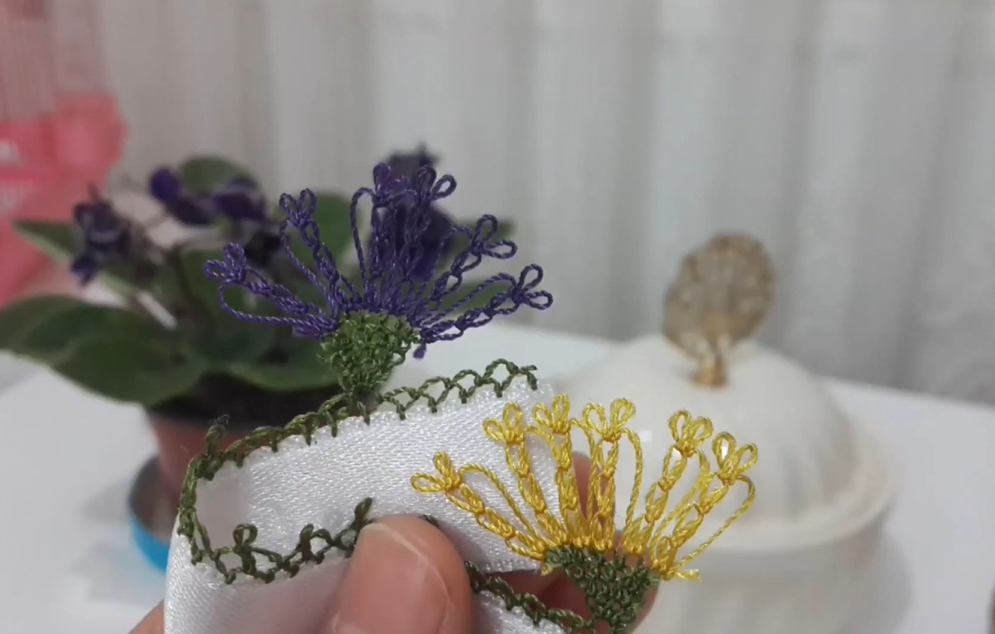 Bu bölümde çok hoş oyalardan bahsedeceğiz. İlk bahsedeceğimiz model yeni iki renkli iğne oyaları olacak. Mor yazmaya iğne oyası olarak yapabilirsiniz. Daha önce çiçek desenli mor yazmaya yaptırmıştım komşuma. Çok güzel olmuştu. İğne oyaları çiçek modelleri yapımı severek yazmalara uygulayacağımız modellerden. Yeşil yazmaya iğne oyaları, siyah yazmaya iğne oyaları olarak yapabiliriz. İğne oyası kolay namaz örtüsü yapılışı sevilen çiçekli iğne oyalarından. Gelelim şimdi yeni örneğe. İki renkli iğne oyası yapılışını öğrenelim.