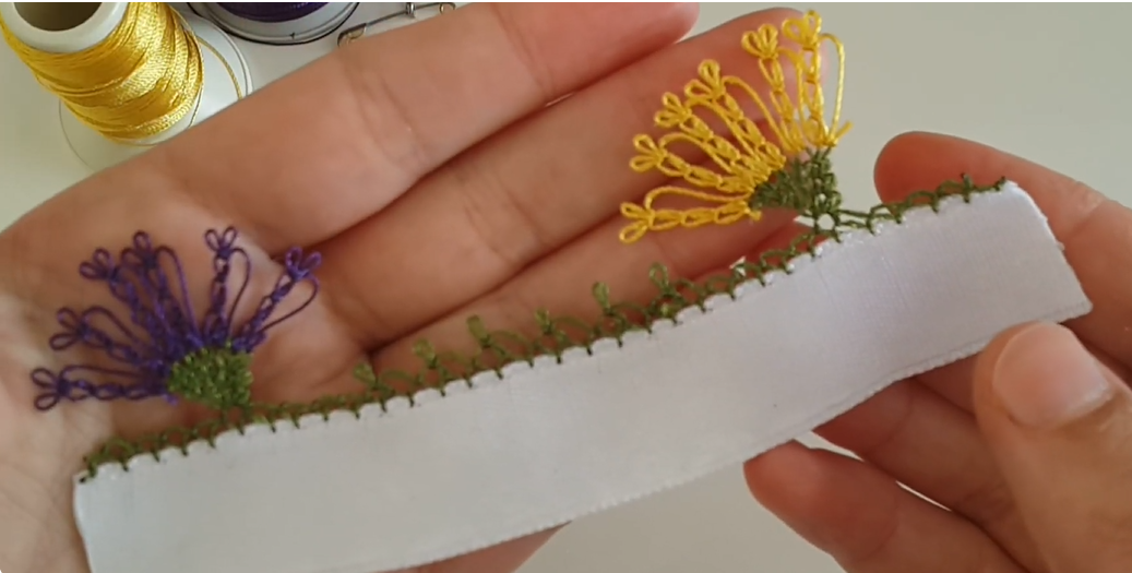 Sarılar, morlar, yeşiller, kırmızılar… Birçok renkle yapılabilecek oyalardan. Her renk yazmalara, tek renk yazmalara, desenli yazmalara çok yakışacak oyalardan.
