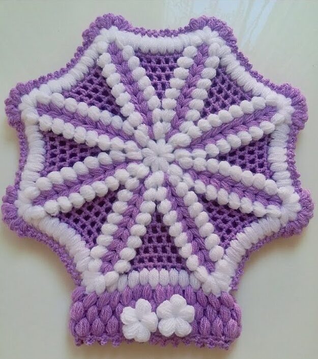 Mor tonları ve beyaz renk kullanılarak örülmüş çok şık bir lif daha. Günlük kullanım içinde çeyizlik lifler olarak da örülebilecek kolay lif modellerinden. İlk olarak lifi tamamladığımızda nasıl göründüğüne bakalım.