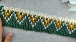Önce uzun şerit örüyoruz. Daha sonra şeritleri birbirine ekleyerek taban kısmını örerek patiği tamamlamaya başlıyoruz. Tamamlandığında ise aşağıdaki gibi görünecek.