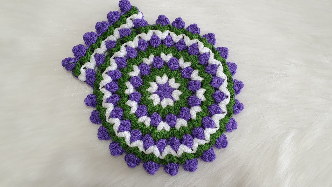 3 renk kullanarak ördüğümüz ponponlarla süslediğimiz güzel bir lif öreceği. Fıstıklı lif modellerinden. Etraftaki fıstıkları, renkli kısımların tur sayılarını artırarak daha büyük lifler örebilirsiniz.