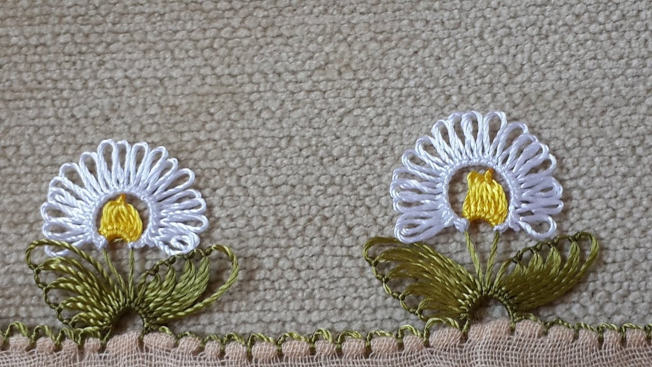 Kırları süsleyen beyaz papatyaları yazmalarımıza en güzel haliyle yapmaya devam ediyoruz. Papatya çiçeğini örgülere, oyalara, çeşitli hobi dünyasında çalışmalara uyguluyoruz. Şimdi mini mini yapraklarıyla yazmalarda çok güzel duracak oyanın görünüşüne bakalım.