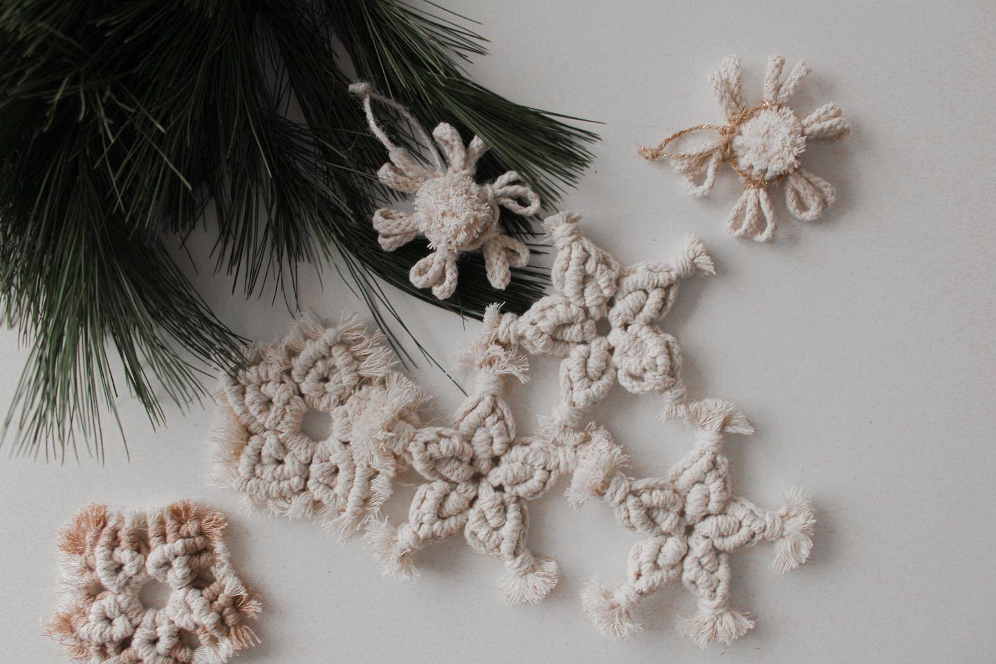 Modern makrome çalışmalarından kar tanesi iki veya tek renkli yapıldığında yukarıdaki gibi duruyor. Son olarak videoya geçelim ve makrome kar tanesi nasıl yapılır öğrenelim.