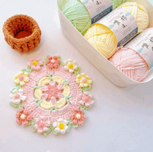Çok güzel görünüyor değilmi. Örülmeye değer. Son olarak videoya geçelim detaylarıyla papatya buketi bardak altlığı yapılışını öğrenelim.