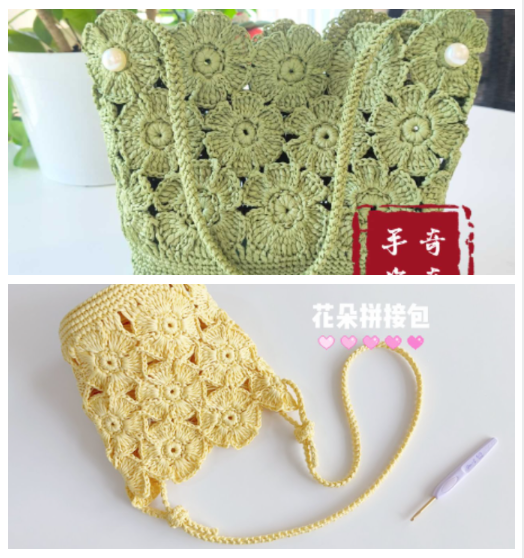 3,5 mm tığ ve rafya ipi kullanarak aşağıdaki çantaları örüyoruz.