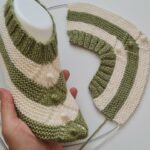 Patikler için beğendiğiniz ipleri kullanabilirsiniz. İki şişle patik modelleri, tığ işi patik modellerinden birçok model kullanabilirsiniz. Dikişsiz patik modelinde yaprak örgü modeli ve fıstık örneği bir arada kullanılıyor. Yaprak örgü bir modele eklendiğinde ortaya çok şık bir görüntü çıkıyor.
