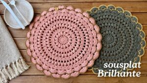 6 mm pamuklu iplik 3, 5 mm tığla örülmüş 2 renk kullanılmış şık bir supla yapılışını öğreneceğiz. Tek renk olarak örüp kenar süsü olarak gold, gümüş veya farklı iplerle yapabiliriz. Suplanın çapı 38 cm civarında.