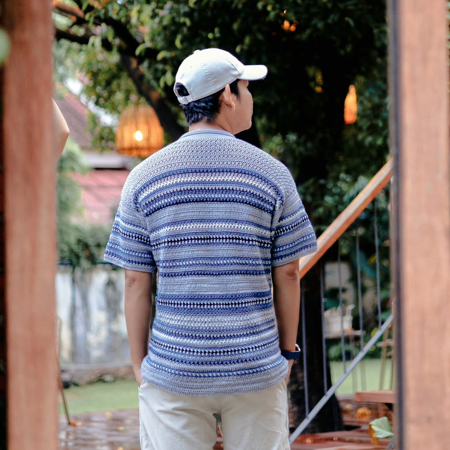 Çizgili, yakalı, kolu kısa tişört yada gömlek göreceğiz. Yine kol boyunu uzatabiliriz. El örgü hırka modelleri olarak da örebiliriz yeni örgü modellerini kullanabiliriz. Zincir sayısını ayarlayarak S bedenden en büyük bedene kadar örebiliriz. 3 mm veya 3,5 mm tığlarla gömleği örebiliriz. Gri, mavi, beyaz, siyah renkleri kullanacağız.