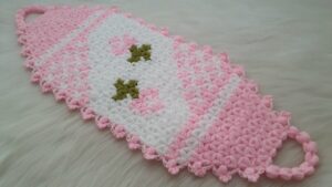 Lif örmeye yeni başlayanlar için kolay uzun lif modelleri ve yapılışları anlatımlı bir model var sırada. Bu güzel model için 3 renk veya daha çok renk kullanarak örebilirsiniz. Aynı örneği takım lif modellerine de çevirebilirsiniz. Uyarlaması kolay bir model. Kese lif modelleri ve kare lif modelleri videodaki uzun lif modellerini örerek çeyizlik lif modellerini takım olarak örebilirsiniz. Görselde uzun lif olarak modelin nasıl durduğunu göreceğiz. Uzun lifin tutma kısımlarında ahşap halka, plastik halka da kullanabilirsiniz. Örgüden askı yapmak da çok kullanışlı olacaktır.