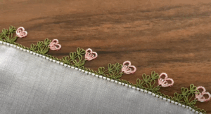 Anlatacağımız modeli misafir havlularınız için yapabilirsiniz. Kadife kumaş kutu kaplama havluluk içine yerleştirerek banyo dekorasyonunda kullanabilirsiniz. Renk renk havlular hazırlayıp kullanabilirsiniz. İğne oyası yazma modellerine de çok yakışan bir model. Çeyiz hazırlığında olan arkadaşlar için güzel olacaktır. Çeyizlerinde bulundurabilirler. İki yaprağın arasına küçük bir çiçek yaparak daha neşeli ve albenili hale getirebilirsiniz. Çıtır çıtır bir model. İğne oyası zürafa yaparak kolay bir şekilde aşk merdiveninizi yapabilirsiniz. Aşk merdiveni isimli çok güzel de bir çiçek var. Ne kadar doğru bilmiyorum evinde aşk merdiveni çiçeği olanların eğer çok gür ve güzel bir şekilde büyürse o evde büyük bir aşk olurmuş. O aşk dolu yuvada daha güzel büyürmüş. Neyse hadi başlayalım iğne oyası aşk merdivenine.