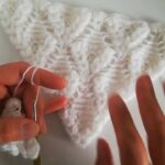 14 ilmek kalacak şekilde bu teknikle örmeye devam edelim. Daha sonra 1 ilmek kalacak şekilde tüm ilmekleri keserek bitirelim. Tek ilmeğin yanına 4 ilmek atarak artırma yapalım. Sonra aynı teknikle videodaki gibi örmeye devam edelim.