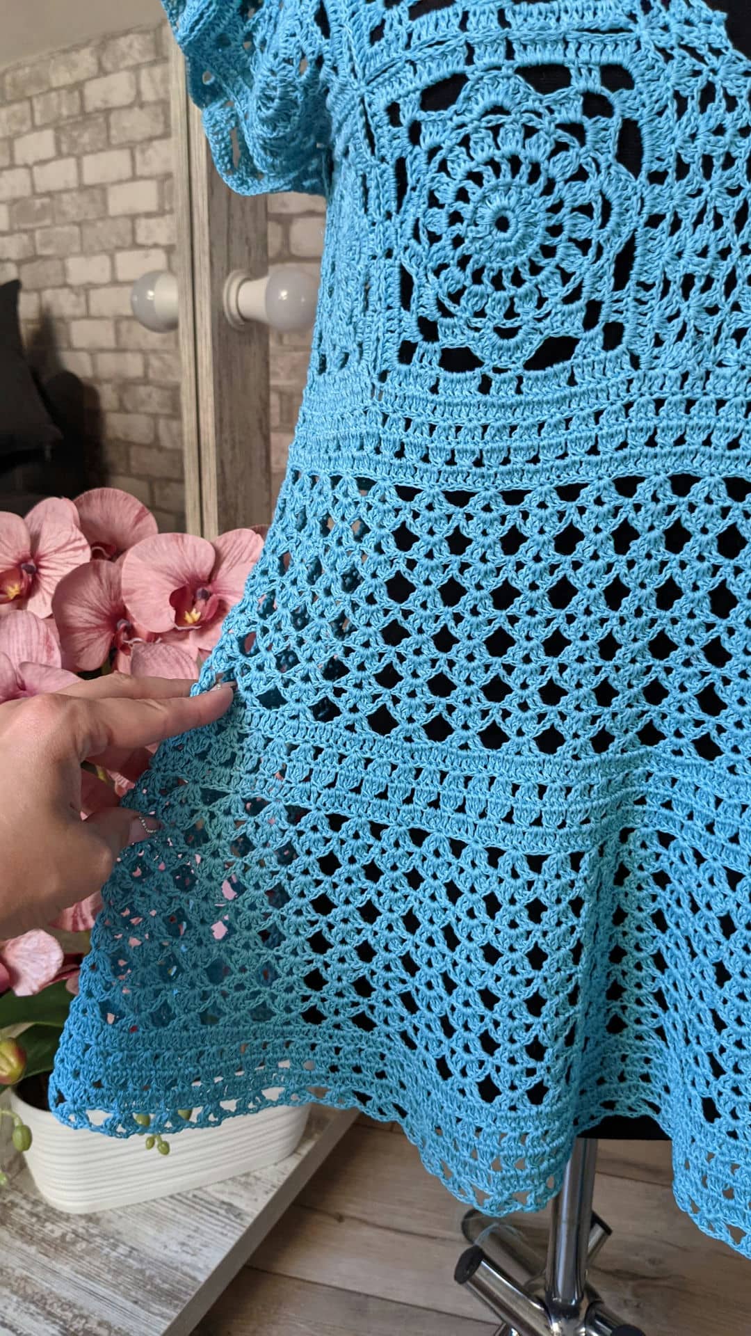 Üst tarafı motifli alt tarafında ise farklı örneklerin kullanıldığı uzunluğunu istediğimiz gibi ayarlayacağımız örgü modellerinden biri. Örgü elbise modelleri olarak da yapabiliriz. Yazlık örgüler olduğu için tercihimiz yaza uygun iplerden yana olmalı. Keten, merserize, pamuklu gibi. Modelde keten iplik kullanılmış.