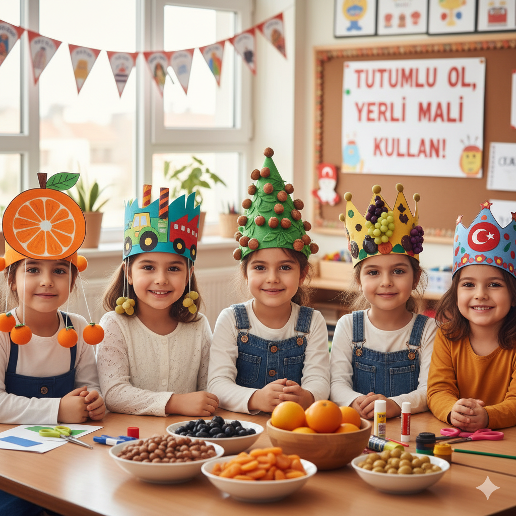 Her yıl 12 – 18 Aralık haftası Yerli Malı Haftası olarak kutluyoruz. Okullarda, evlerde yapabileceğimiz en güzel etkinliklerle ülkemizde, yöremizde yerli neler yetişiyor öğreniyoruz. Çeşitli malzemelerle taçlar, şapkalar yapıyoruz. Evimizde olan yerli malı ürünleri okulumuza götürüp hem yiyoruz hem öğreniyoruz hem eğleniyoruz. Okul öncesi etkinlikleri, ilkokul çağındaki çocuklarımızla birlikte şapkalar, kekler, pastalar, meyveler hazırlayarak yerli malı haftasını kutlayabiliriz. Eğer yerli malı haftası ne zaman diye soruyorsanız ilk cümlemizde bahsetmiştik. O gün geldiğinde o hafta geldiğinde etkinlikleri hazırlayamaya başlayabiliriz. Geçtiğimiz günlerde çocuklarımızla birlikte sonbahar şapkası okul öncesi örneklerini incelemiştik. Oradan da esinlenerek bazı modelleri yapabiliriz. Balkabağı, fındık, ceviz gibi görselleri olan şapkalar yapabiliriz. Yine yerli malı etkinlikleri ile ilgili farklı çalışmalar isterseniz yerli malı haftası etkinliklerine göz atabilirsiniz. Hem yerli malı şapka yapımı hem de farklı etkinlikleri inceleyebilirsiniz. Renkli taç modelleri ve yapılışlarından bahsettik. Yine burada bulunan bazı modelleri yerli malı haftasında yapabilirsiniz. Mutlaka inceleyin. Çok güzel modeller var. Yerli malı şapkalarını inceleyip kolay gelen, beğendiğiniz modelleri hemen yapmaya başlayabilirsiniz.