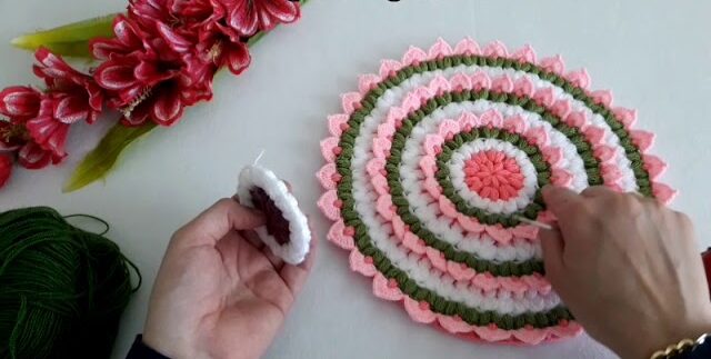 Lif sever takipçilerimiz için yepyeni bir lif anlatımı daha. Modelimizin daha evvelden uzun versiyonunu paylaşmıştık siz değerli mimuu takipçileri ile. Bugünde yuvarlak modelini paylaşıyoruz. İsterseniz takım yapın isterseniz de sadece tekli olarak örün seçim sizin. Üç sıra lale uygulaması yaptığımız modelimiz ayçiçeği görünümü alıyor. Sizler için daima en yeni modelleri araştırdığımız için uzun modeline ek olarak yuvarlak modelinin de büyük bir heyecanla sizlere sunuyoruz. 7 numara tığ modelimize uygun dilediğiniz renklerle örebilirsiniz. Orta göbekten sekiz fıstıkla başlayıp aralara iki zincir çekerek başlıyoruz. İkinci sırada her araya iki tane fıstık yapıyoruz aralar yine iki zincirle. Üçüncü sırada iki araya iki fıstık yapıp tek seferde çekiyoruz aralara üç zincir ve dördüncü sırada yaprak uygulaması yapıyoruz.